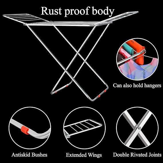 + Free Shipping- ✅ DESIGN AND UNIQUE FEATURES : 100 % Stainless Steel including Screws and Fasteners making it rust and corrosion free !!: Strong construction with large drying space with high quality metal construction, more sturdy and durable you can position your clothes with a nice amount of space between them so they can dry thoroughly.100 % Stainless Steel including Screws and Fasteners making it rust and corrosion free !!